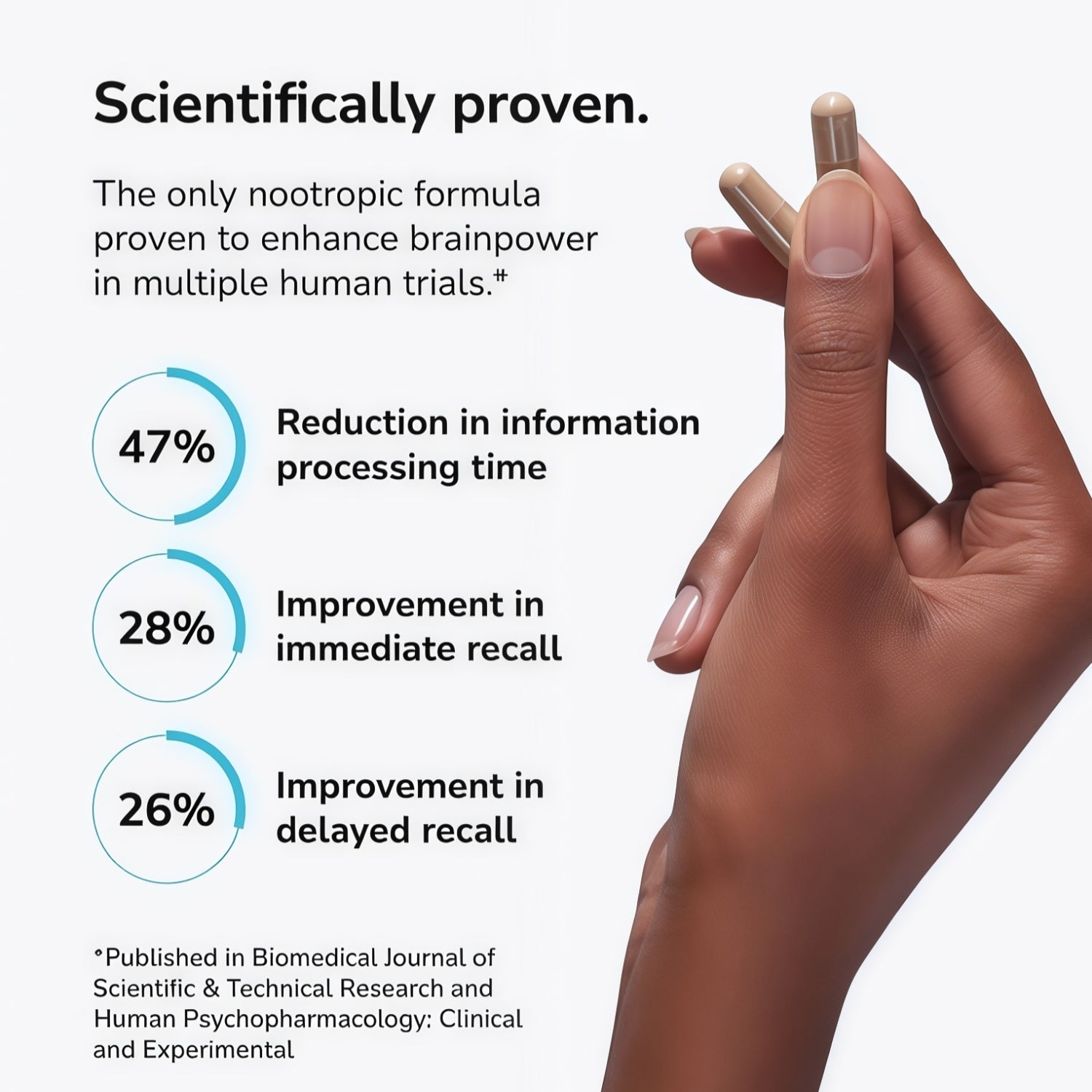 MLPv4 is theonly nootropic formula proven to enhance brainpower. By independent University research. In multiple double-blind, placebo controlled human trials.